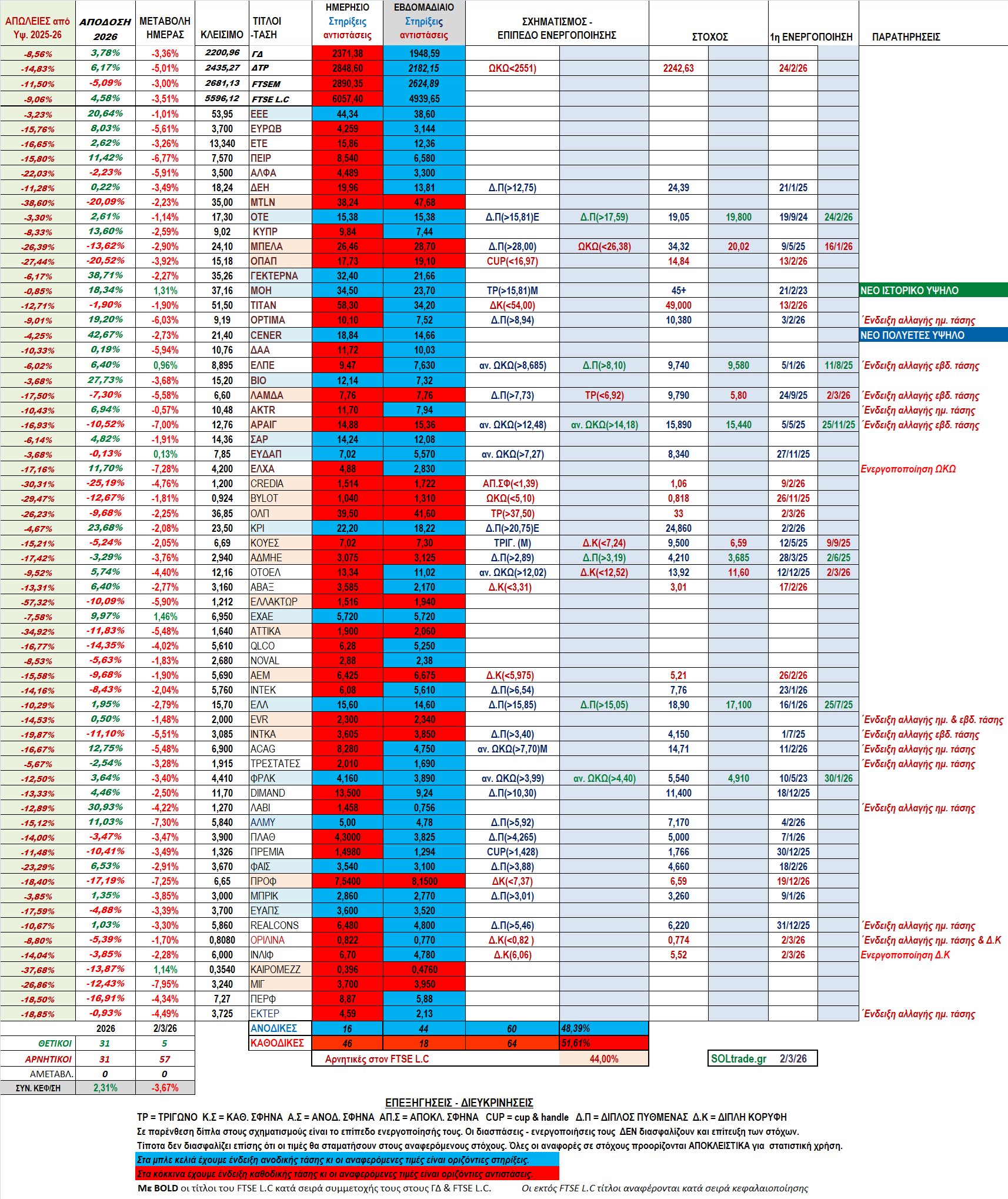 Εβδομαδιαία και μηνιαία ανασκόπηση Γ.Δ – Σκέψεις για ΕΤΕ, AEGEAN, METLEN