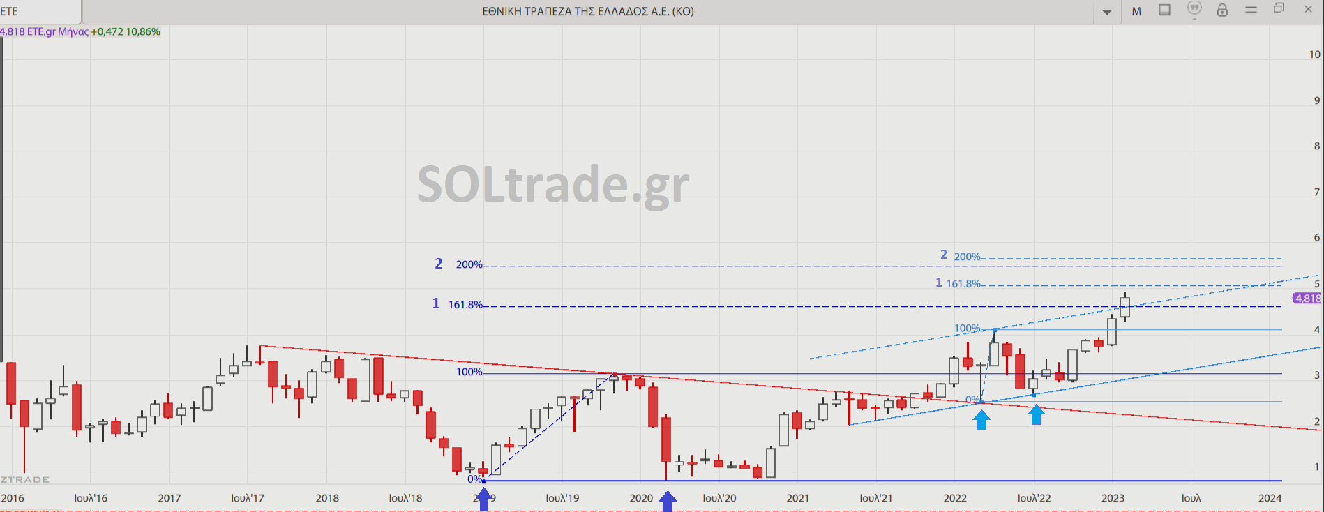 Ο ΓΔ κι ο ΔΤΡ συνέχισαν υψηλότερα κάνοντας όλο και πιο πιστευτούς κάποιους ανοδικούς στόχους που προκύπτουν από τις ανοδικές διασπάσεις σχηματισμών αλλά και από επίπεδα fibo επέκτασης πιθανολογούμενων ανοδικών κυματικών σεναρίων, αποτυπωμένων στα μηνιαία κι εβδομαδιαία διαγράμματά τους που ακολουθούν κι είναι ευκαιρία να τα θυμηθούμε μια και τα περισσότερα έχουν δημοσιευθεί και σε προηγούμενες αναρτήσεις: