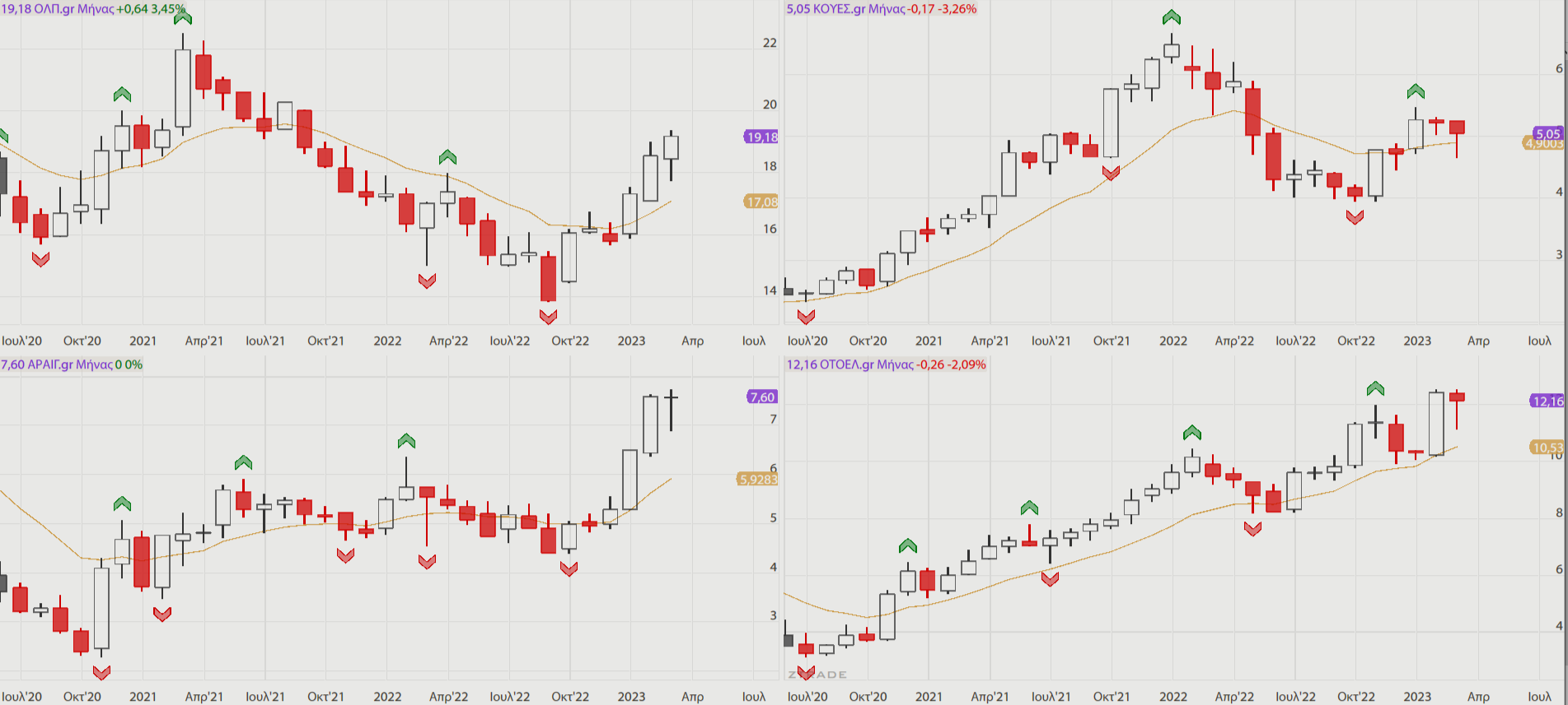Από τις 9 μικρότερες κάτω από τον ΕΚΜΟ 12 μηνών βρίσκονται η ΛΑΜΔΑ, η ΕΥΔΑΠ που είδαμε εκτεταμένα αυτή την εβδομάδα και η ΣΑΡ ενώ η ΕΛΧΑ το απέφυγε οριακά. ΚΟΥΕΣ και ΕΛΛΑΚΤΩΡ αντέδρασαν μόλις τον δοκίμασαν ως όφειλαν αφού θεωρητικά η κύρια τάση τους παραμένει ανοδική.