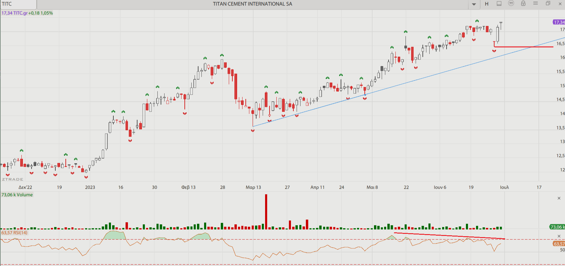 Ανοδική διάσπαση της πρώτης αντίστασης στη μεγάλη εικόνα είχαμε και στο κλείσιμο μήνα στην ΤΙΤΑΝ με το τρίγωνο που διασπάστηκε να ανοίγει την όρεξη για υψηλούς στόχους.