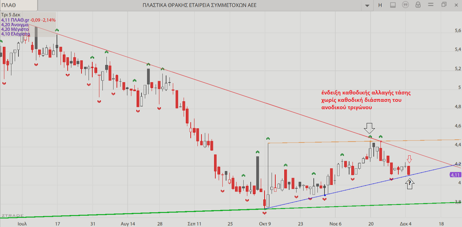 Πέραν της ΓΕΚΤΕΡΝΑ αντίστοιχη ένδειξη αλλαγής τάσης είχαμε και στα ΠΛΑΘ ενώ την ακριβώς αντίθετη είχαμε στην ACAG που επέστρεψε στη μπλε ζώνη στο ημερήσιο σύμφωνα με τις σημειώσεις στα ημερήσια διαγράμματά τους που ακολουθούν.