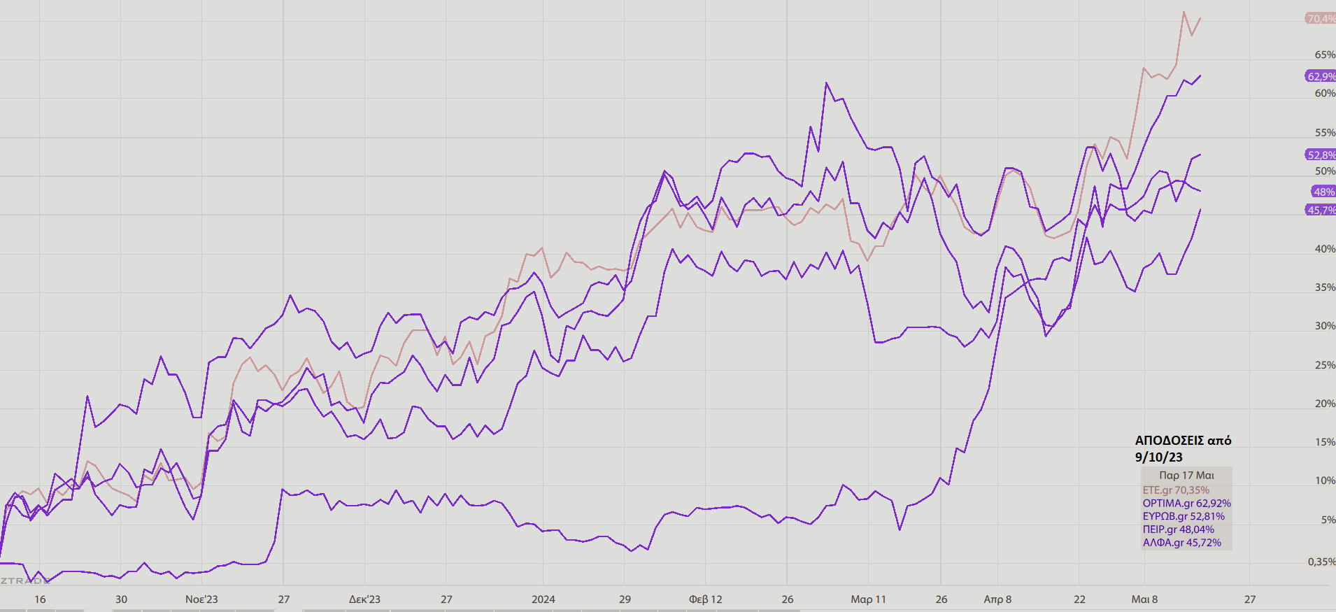 Η ΕΤΕ δεν προηγείται σε απόδοση μόνο το τελευταίο διάστημα αλλά σε όλη την άνοδο από τον Οκτώβριο