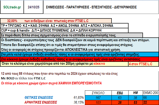 Και εδώ βεβαίως είχαμε αρνητικές αποκλίσεις στα πρόσφατα υψηλά σε ημερήσιο κι εβδομαδιαίο που είναι συμβατές με την διόρθωση που ακολούθησε