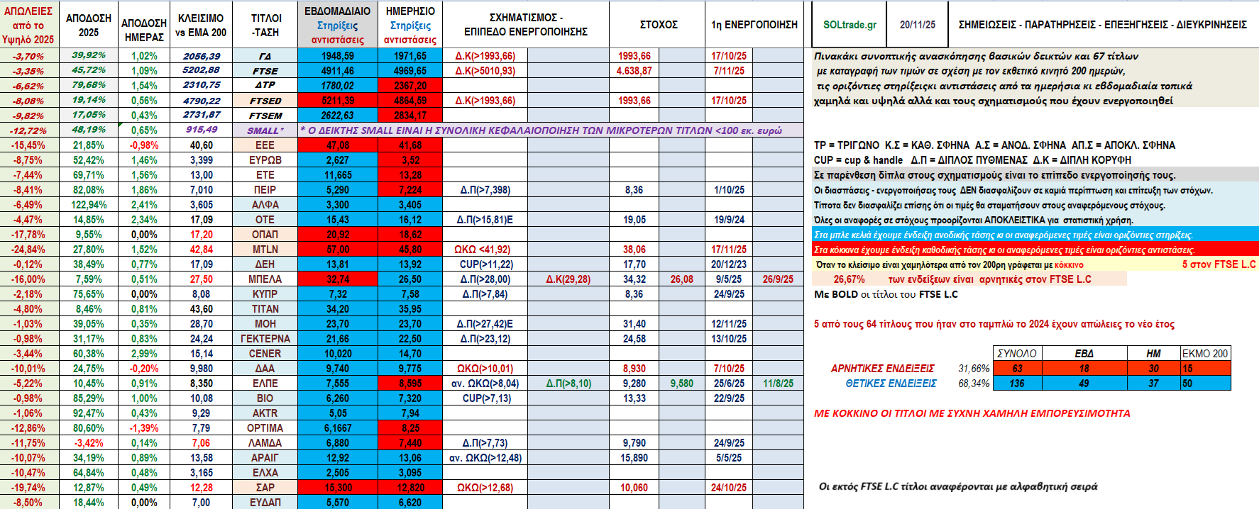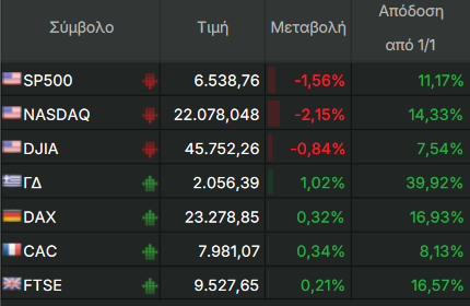 Οι Ελληνικοί δείκτες έχουν υπερδιπλάσια απόδοση το 2025 από τους μεγαλύτερους αμερικανικούς κι ευρωπαϊκούς αλλά η νέα επιδείνωση / ανατροπή της θετικής εικόνας στο ξεκίνημα των δεικτών στη wall str με την επιβεβαίωση ενεργοποίησης πιθανών (κάπως στραβών) ΩΚΩ σε SP500 & NASDAQ δεν αναμένεται να αφήσει ανεπηρέαστη και τη δική μας αγορά…
