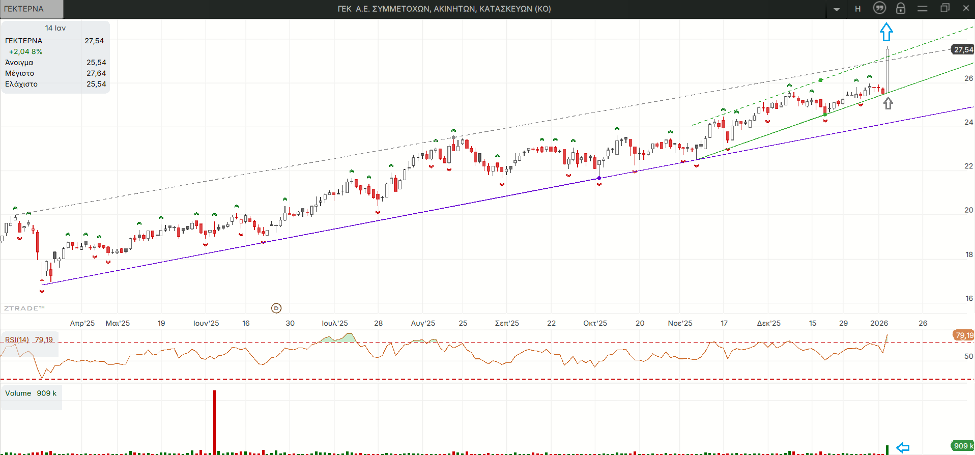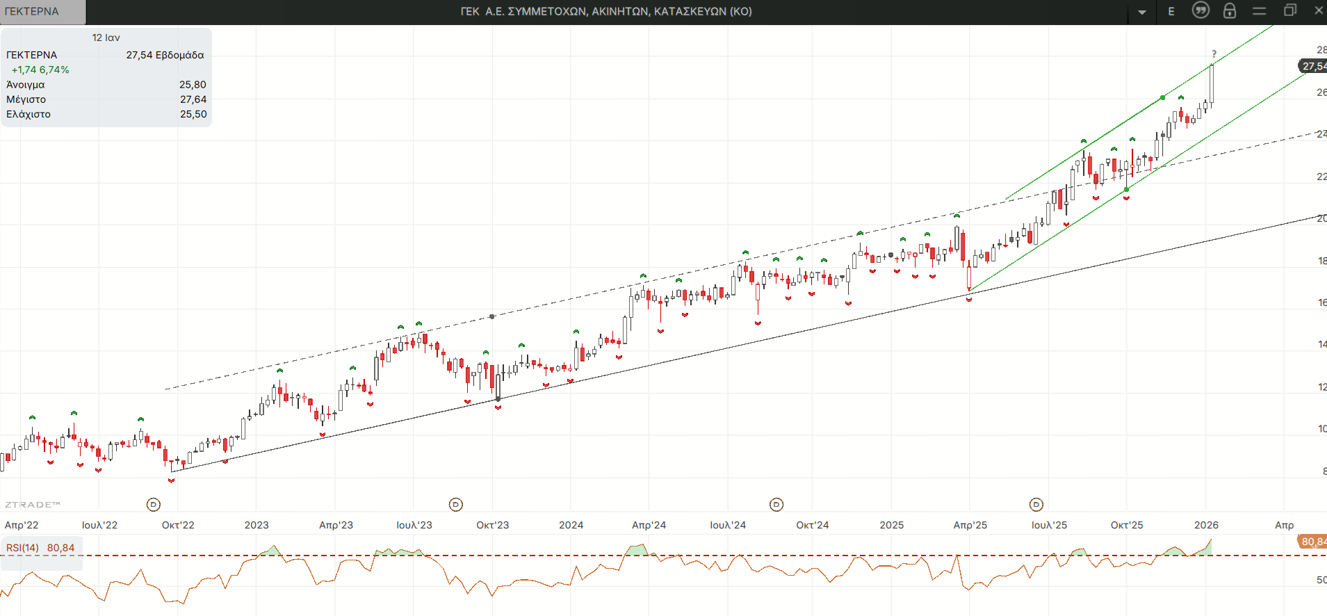 Οι τιμές διασπούν ανοδικά τη μια μετά την άλλη τις υποτιθέμενες αντιστάσεις από τις άνω παράλληλες των ανερχόμενων γραμμών τάσης που λαμβάνουν όλο και πιο απότομη κλίση.
