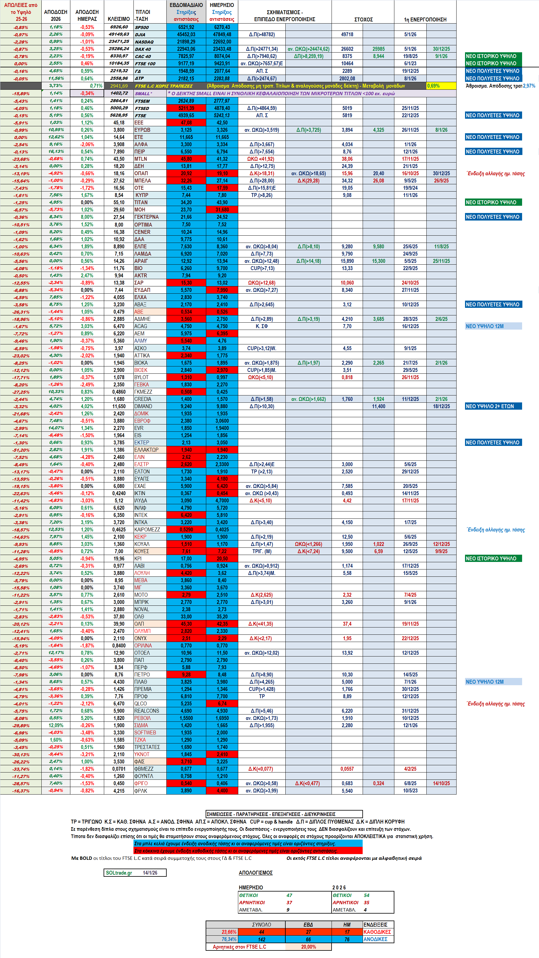 Κατά τα λοιπά είχαμε χθες μια καλή μέρα στην αγορά με τα μη τραπεζικά χαρτιά να μην υστερούν των τραπεζών για πρώτη φορά φέτος και οι μετοχές με θετικό πρόσημο στο κλείσιμο ήταν σαφώς περισσότερες των αρνητικών. Ουκ ολίγες μετοχές είδαν πάλι νέα υψηλά. Οι ξένοι δείκτες ήταν στο κόκκινο με την εξαίρεση του Λονδίνου που έκανε πάλι νεότερο ιστορικό υψηλό όπως και ο CAC 40 πριν υποχωρήσει στα κόκκινα. Όλα αυτά και πολλά ακόμα μπορούμε να τα δούμε στο πινακάκι συνοπτικής ανασκόπησης που ακολουθεί: