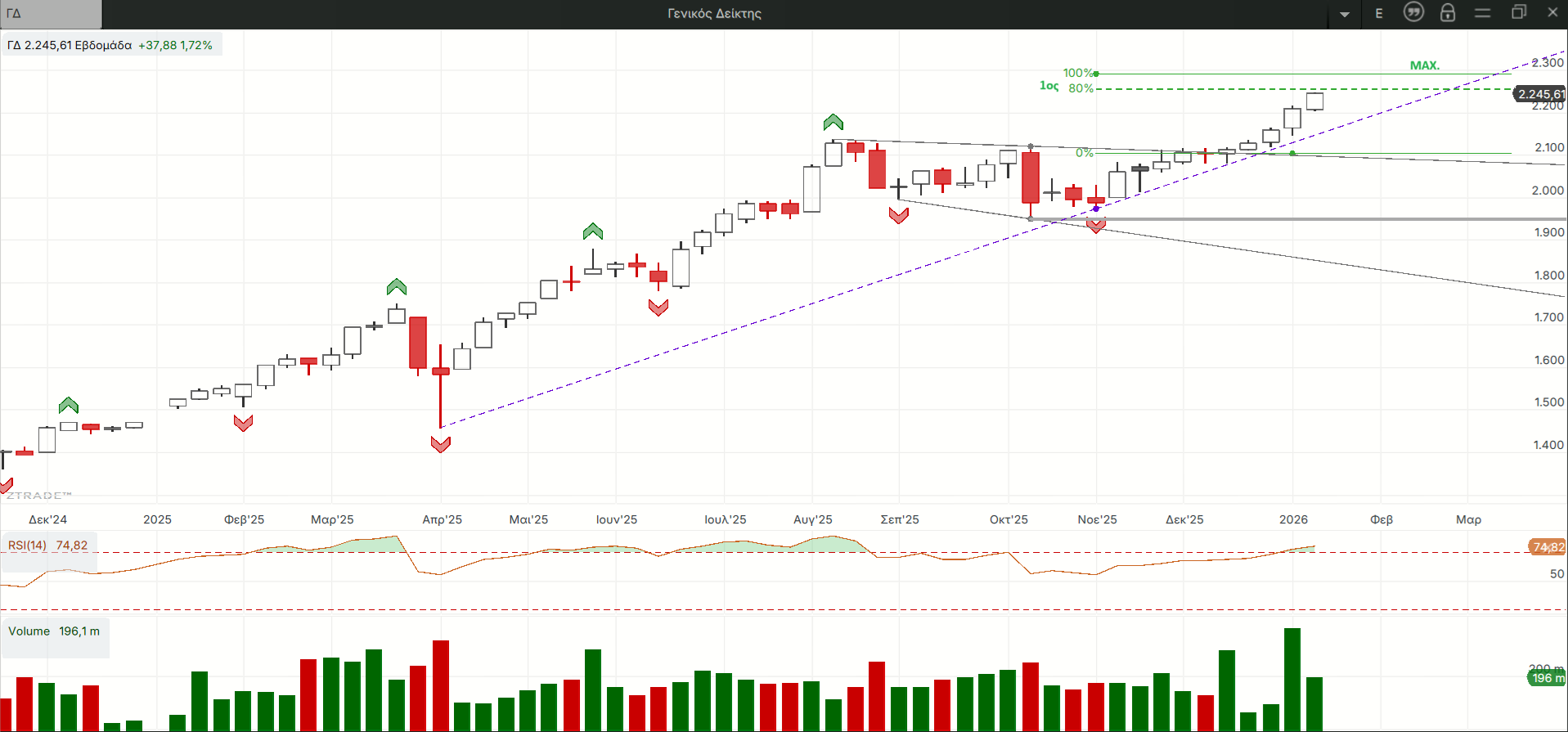 Παρά το φρενάρισμα της Παρασκευής η εβδομάδα πήγε πολύ καλά για τον ΓΔ με τιμές σε νέα υψηλά να πλησιάζουν τους στόχους που είχαν αναφερθεί στην πρώτη ανάρτηση του νέου έτους.