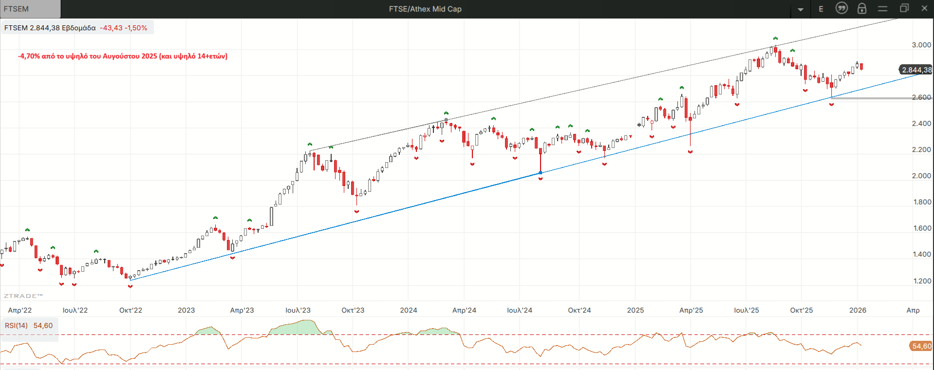 Ο FTSEM είχε αρνητική απόδοση και απέχει ακόμα αρκετά από τα υψηλά του Αυγούστου αλλά η τάση παραμένει ανοδική