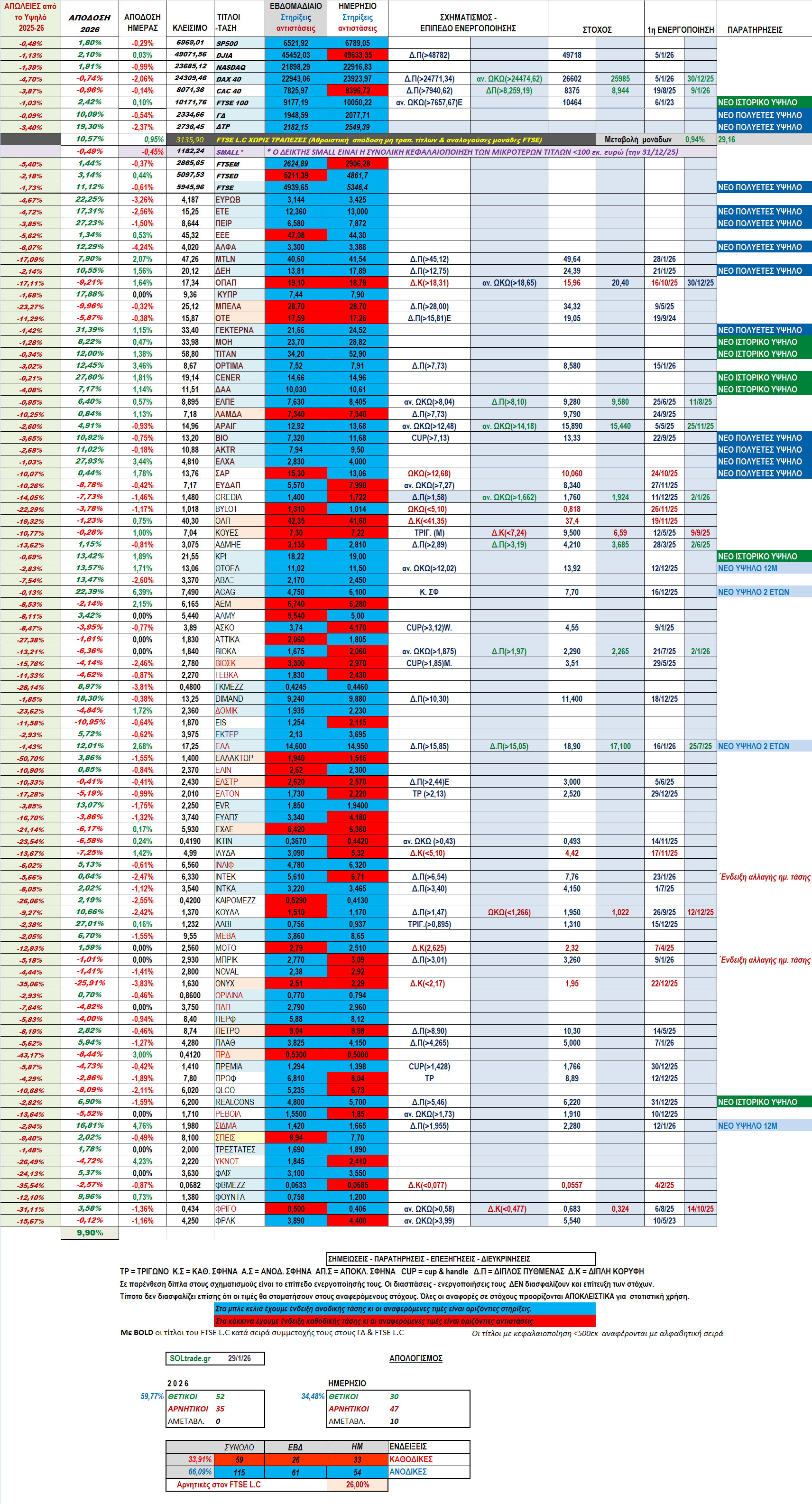 Σημαντική ήταν η και συνεισφορά του ΟΠΑΠ οι τιμές του οποίου αντέδρασαν εκεί που έπρεπε, της ΓΕΚΤΕΡΝΑ που έκανε κι αυτή νέα υψηλά αλλά και των ΜΟΗ , ΤΙΤΑΝ (ο οποίος έπιασε το στόχο του πρόσφατου διπλού πάτου του) που ακολουθούν, με νέα υψηλά επίσης και το ποσοστό συμμετοχής τους στους δείκτες να πλησιάζει πλέον αυτό του ΟΤΕ και της ΜΠΕΛΑ.