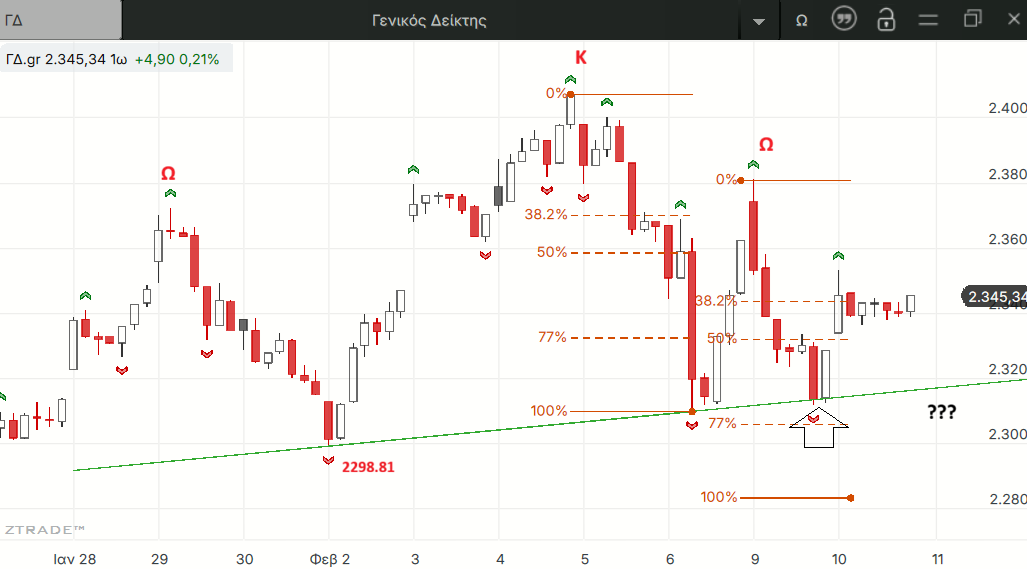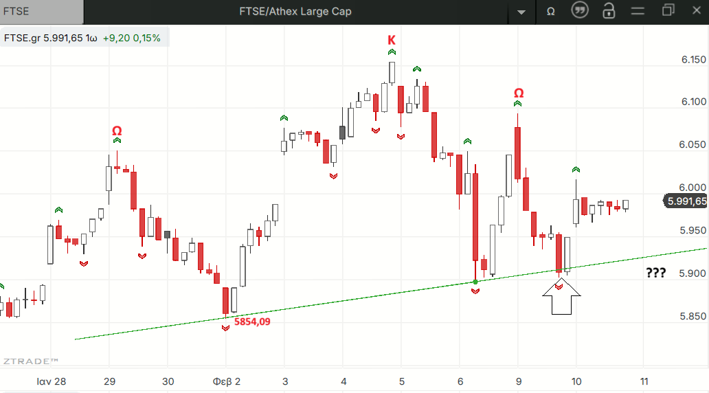 Ένα χαρακτηριστικό της χθεσινής ημέρας ήταν η άνοδος του χαμηλότερου από τα δυο τελευταία τοπικά χαμηλά που είναι και η οριζόντια στήριξη για τους δείκτες που θα δούμε παρακάτω με τα βραχυπρόθεσμα καθοδικά μη ενεργοποιημένα σενάριά τους και σημειωμένα τα νέα επίπεδα στήριξης.