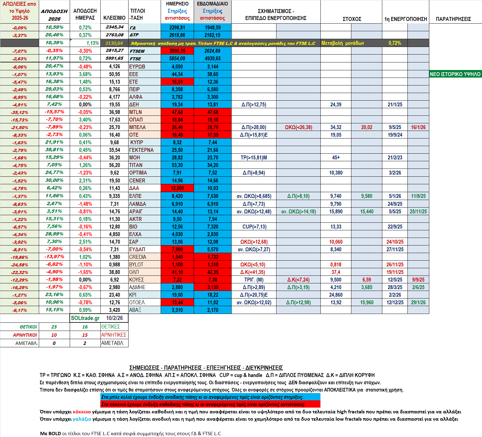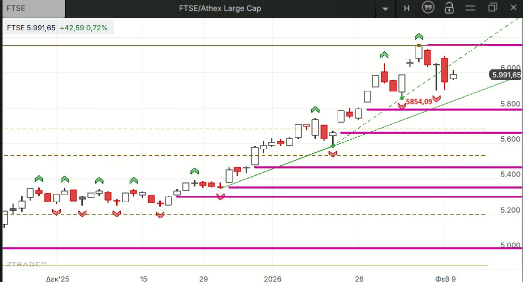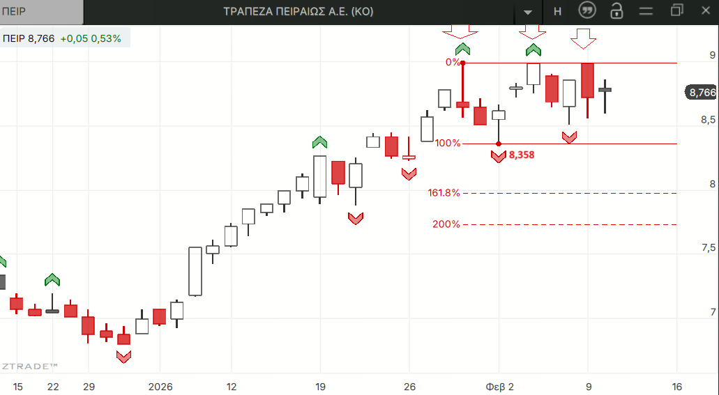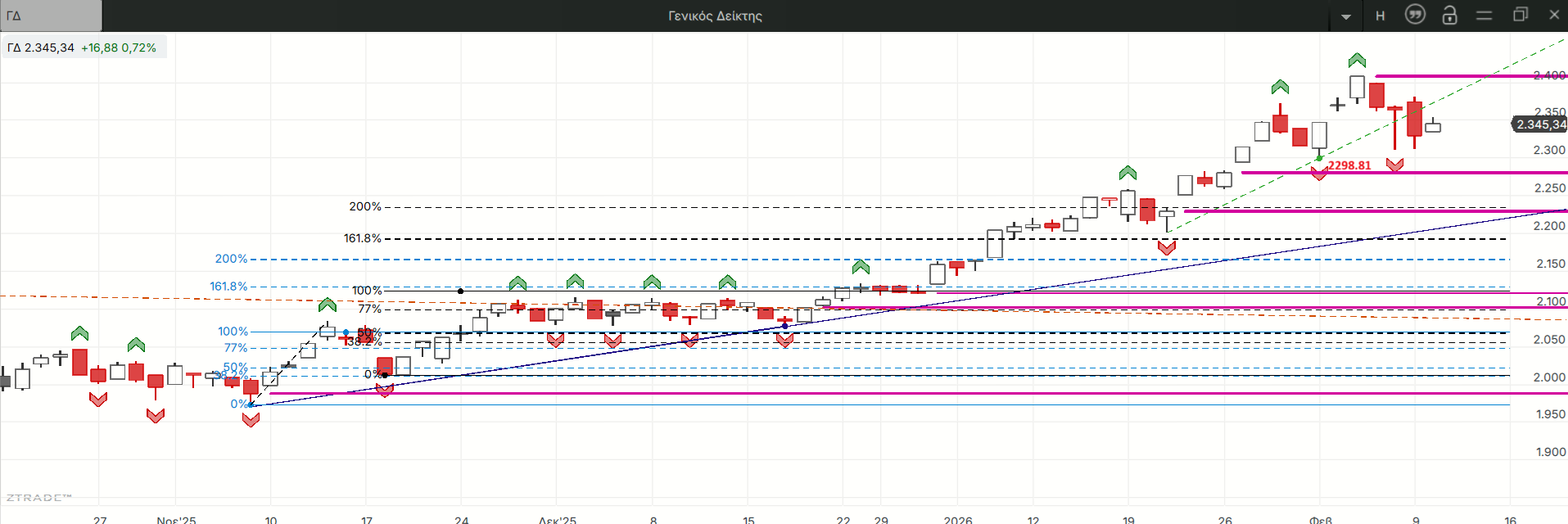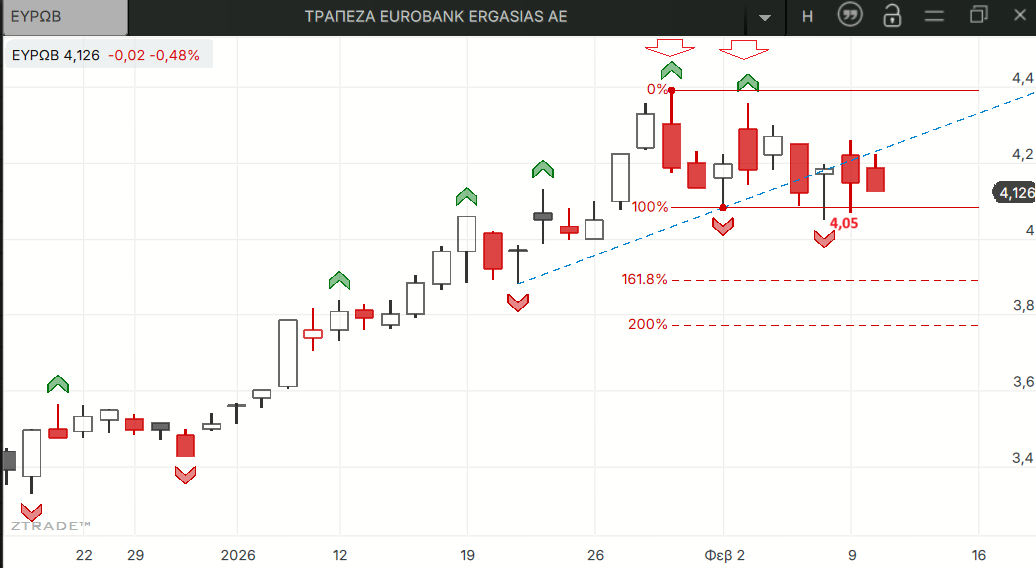 Τυχόν παραβίαση αυτών των στηρίξεων και ενεργοποίηση των καθοδικών σχηματισμών θα είναι μια πρώτη ένδειξη πιθανής αλλαγής της τάσης στο ημερήσιο.
