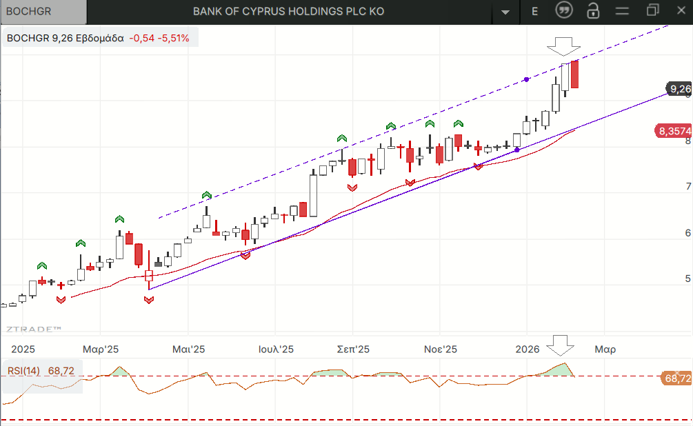 Η ΚΥΠΡ βούτηξε επίσης και δείχνει να κορύφωσε για τη ώρα στην παράλληλη της κύριας γραμμής τάσης αλλά οι στηρίξεις της είναι πολύ χαμηλότερα και για την ώρα δεν κινδυνεύουν