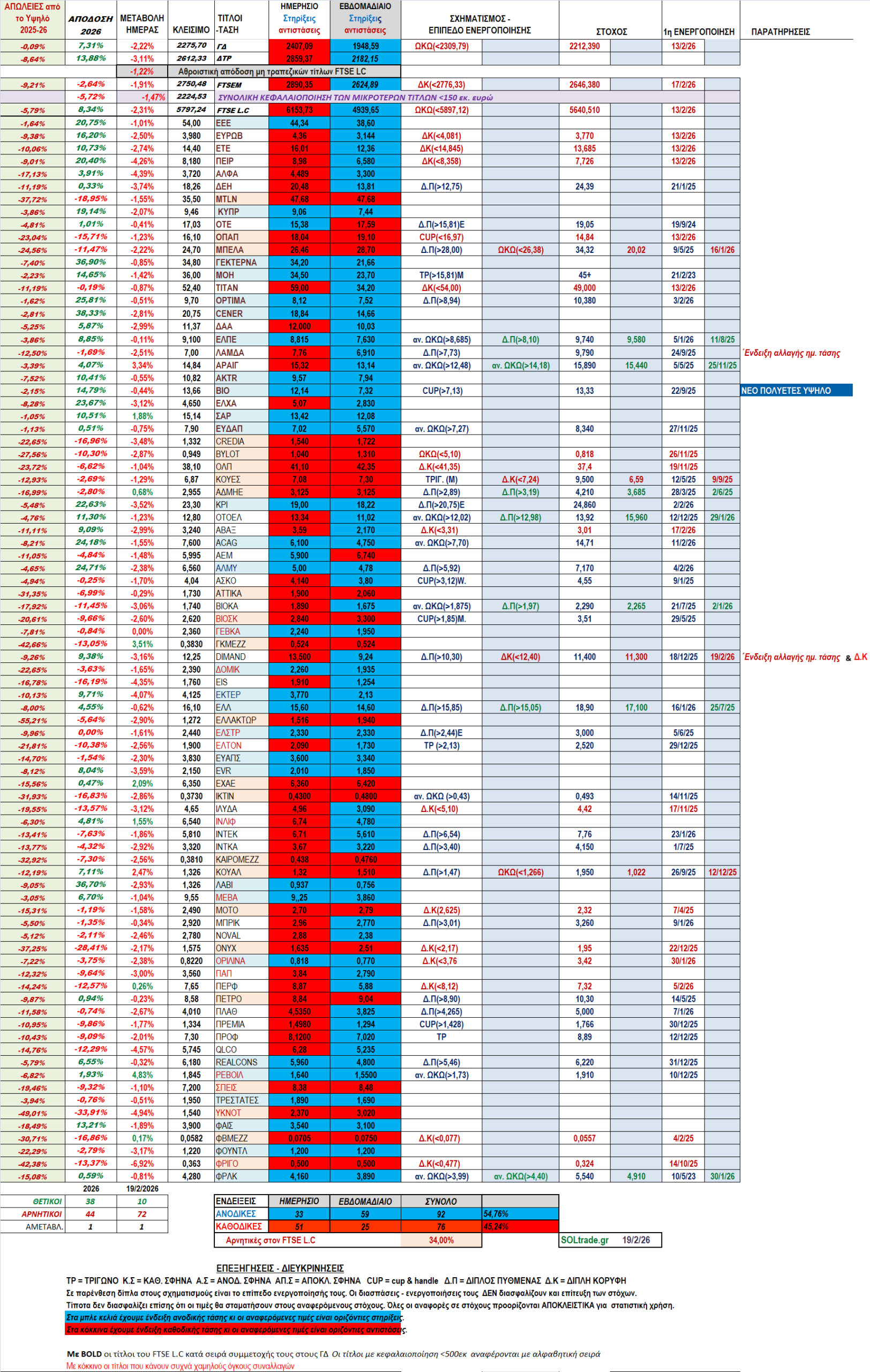 Μια από τις ελάχιστες μετοχές που ξεχώρισαν θετικά κι η μόνη από τον δείκτη μεγάλης κεφαλαιοποίησης με θετικό κλείσιμο ήταν η ΣΑΡ που είναι σε ανοδική τάση σε ημερήσιο κι εβδομαδιαίο κι έχει ακυρώσει τον σχηματισμό καθοδικής αντιστροφής ΩΚΩ που δεν ευδοκίμησε αν κι έμεινε ενεργοποιημένος σχεδόν δυο μήνες στο τέλος του 2025. Εμφαντική η χθεσινή άνοδος κόντρα στο κλίμα με μεγάλη αύξηση του όγκου συναλλαγών.