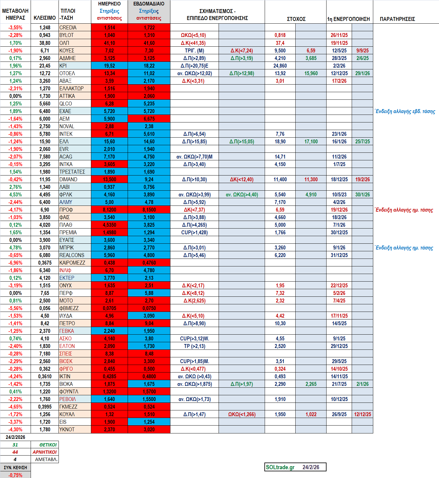 44 μετοχές είχαν αρνητικό κλείσιμο έναντι 31 θετικών.
