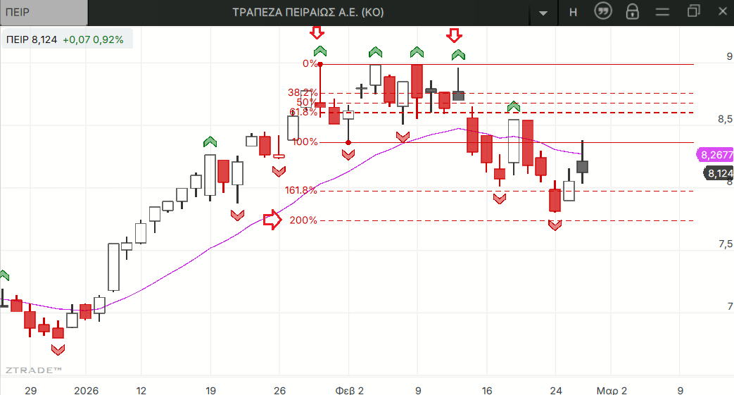 Από τους πτωτικούς στόχους των σχηματισμών διπλής κορυφής πιάστηκε μόνο αυτός της ΕΤΕ ενώ ΕΥΡΩΒ και ΠΕΙΡ άφησαν κάποιο μικρό υπόλοιπο