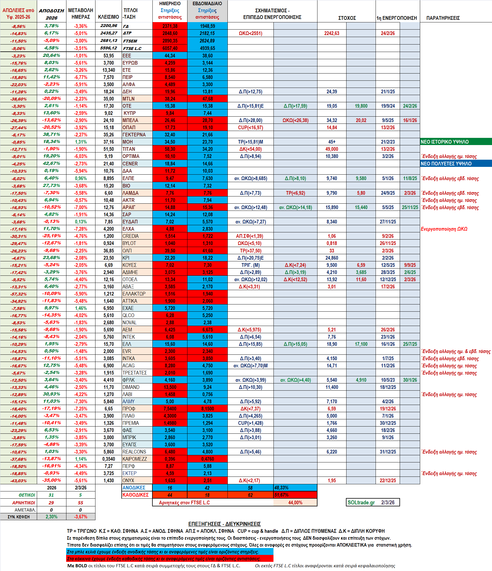 Εβδομαδιαία και μηνιαία ανασκόπηση Γ.Δ – Σκέψεις για ΕΤΕ, AEGEAN, METLEN