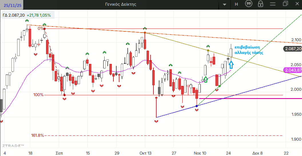 Σημαντική μέρα για τους μεγάλους δείκτες με την ΜΕΤLΝ και την ΔΕΗ με την ΕΕΕ να τραβούν την αγορά ανοδικά και τους ΓΔ & FTSE L.C να επιβεβαιώνουν την επάνοδο σε ανοδική τάση με διάσπαση της γραμμής βραχυπρόθεσμης καθοδικής τάσης και του τελευταίου τοπικού υψηλού.